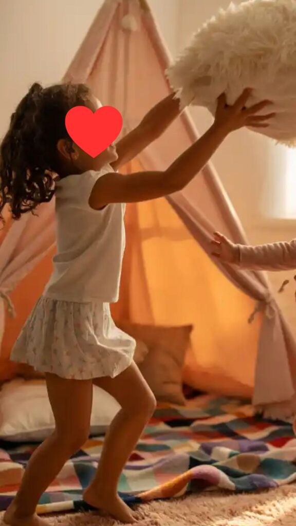 - Once the energy was up, we moved on to active games like Pillow Fight, Hide and Seek in the Dark, and a Talent Show. These were perfect before setting up the sleeping bags, and we used the more open side of the living room for these.